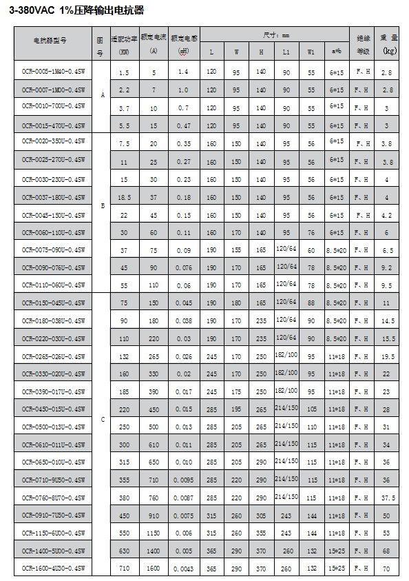 安裝在變頻器輸出端,用于限制變頻器與電機(jī)連接電纜的容性充電電流,鈍化變頻器輸出的PWM波的電壓上升率。電機(jī)電纜長(zhǎng)度超過(guò)一定值時(shí),建議在變頻器與電機(jī)之間插入一個(gè)電機(jī)電抗器用于補(bǔ)償在長(zhǎng)導(dǎo)線時(shí)的電容再充電電流。此長(zhǎng)度決定于變頻器的額定值以及電機(jī)電纜的類(lèi)型。