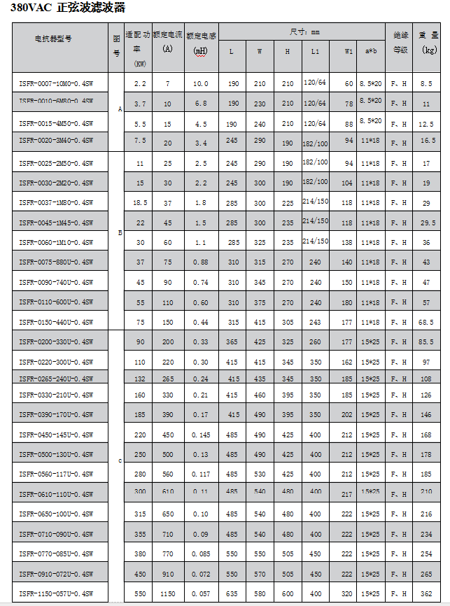 正弦波濾波器是在PWM變頻器驅動下,其開關頻率范圍在2-8kHz之間仍提供正弦波輸出電壓。在變頻器驅動應用中,這種濾波器可以消除電機絕緣失效問題并通過消除與變頻器輸出波形相關的高dv/dt來減少電磁干擾。改善電機的性能和壽命,延長變頻器輸出距離,最長可達3KM。為保護電線電纜,使用正弦波濾波器可防止長引線驅動電機的過電壓問題。在其他能源應用下,比如風力發(fā)電機,逆變器將電力通過升壓變壓器還原到實用的配電系統(tǒng),這種濾波器可以允許使用標準變壓器。滿載并在60Hz時給變壓器輸入的諧波電壓畸變是5%的話,那么滿載時給電機輸入的諧波電壓畸變一般就是5%。