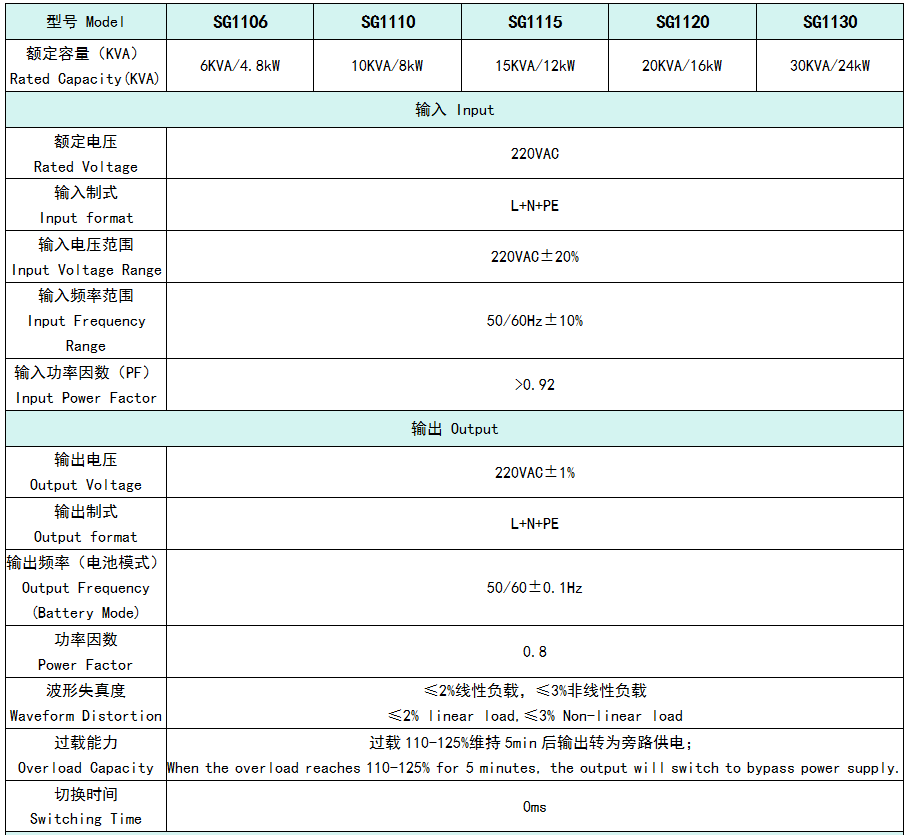 6.耐過載能力:市電額定下,130%可5分鐘, 150%可10秒,滿足客戶突加負載的要求。