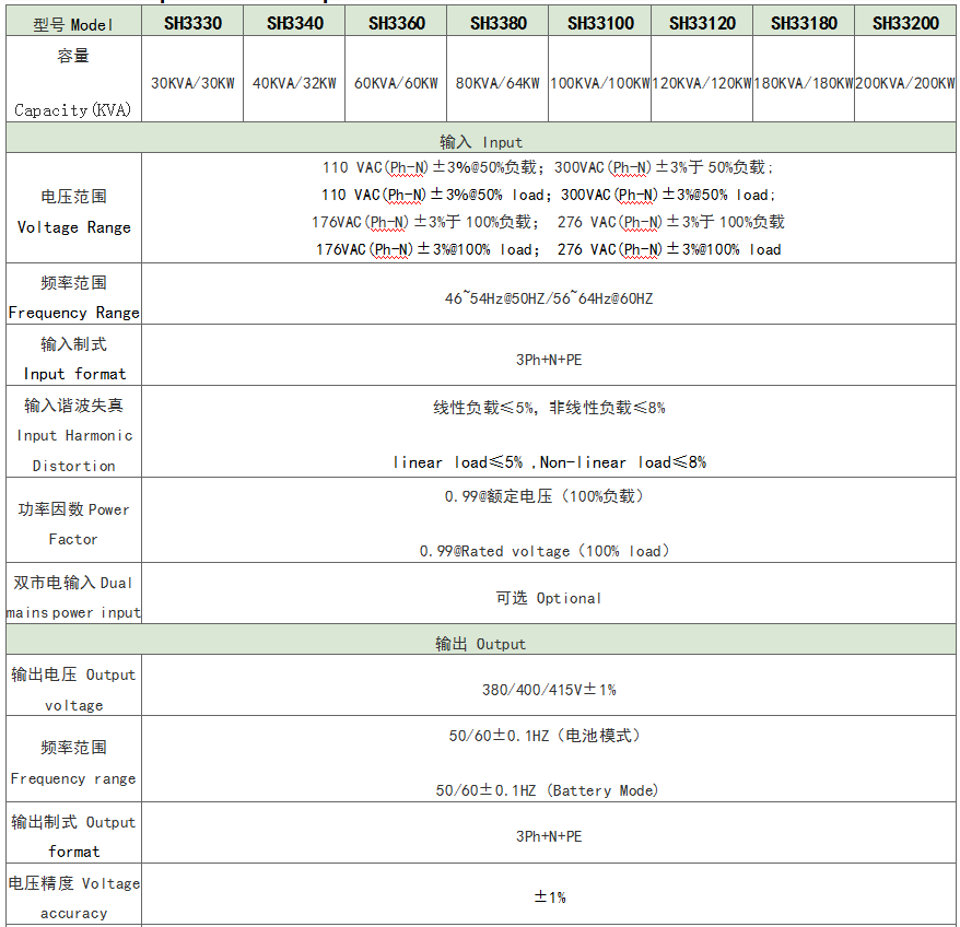 SH3系列高頻在線式UPS主輸入電源和旁路電源可分離,UPS有雙路電源輸入,從而可分別將兩路不同的市電接入UPS提高輸出電源供電的可靠性。雙變換在線式拓撲結構設計,UPS的輸出為頻率跟蹤、鎖相、穩壓和濾除噪聲、不受電網波動干擾的純凈正弦波電源、使UPS對用戶設備提供更為完美的保護。采用智能電池管理功能(ABM)技術,從而延長電池的使用壽命,減少電池維護次數。先進的恒流恒壓自動轉換充電技術,大限度活化電池,節省充電時間,延長電池的使用壽命。插入并機模塊(選件)即可實現多達8臺并機,增加系統的可靠性。系統伸縮性強,容易實現并機。非固定主從關系并機:在幾臺并聯的UPS中,其中先開機的一臺為主(Master)UPS,其他為從(Slave)UPS,主從UPS可以互換,如果一臺UPS機器出現故障,該UPS自動切斷輸出,此時負載由剩下的UPS來提供電源.采用可拆解式模式設計,易維護并高度節約資源,采用智能風機轉速調控設計,根據UPS各功率部件的負載情況,環境溫度和實際溫升情況,對風機進行智能開/關及轉速調控,散熱性能優越,高度節能;采用無環流控制電路,節電性能良好;采用綠色整流和逆變技術,為用戶提供清潔的能源。